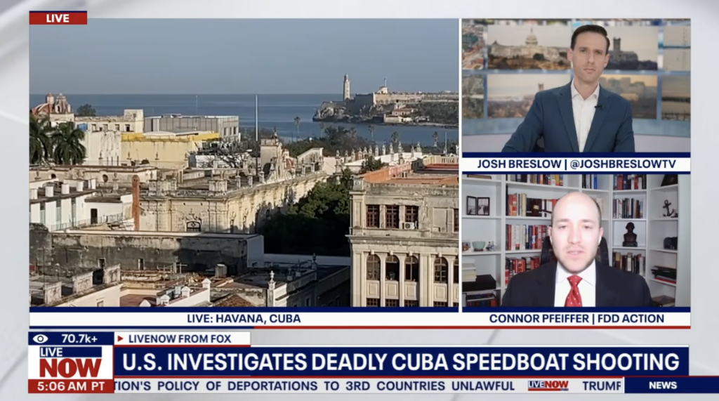 FDD Action Senior Director of Government Relations Connor Pfeiffer joined Josh Breslow to discuss the deadly shooting of a Florida-registered speedboat by Cuban border patrol forces and why the United States must conduct its own independent investigation into the incident. Pfeiffer explained why the Cuban regime’s account of events cannot be taken at face value and why continued pressure on Havana remains essential to U.S. national security.
